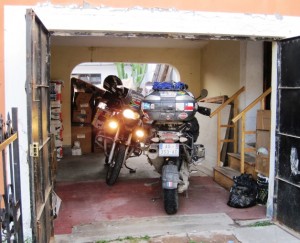 There was another bike parked next to mine in the small garage, and I spent a few minutes chatting to Yannick, a French biker who was on his way south… He had to be woken up to move his bike so we could get out and into the street…