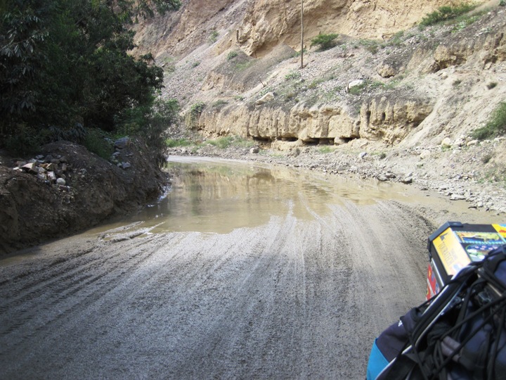 In some places the track was flooded by water running down off the mountainsides, and I had to make quick decisions whether or not to yank the throttle open to shoot through them, or slow down and ease my way through…