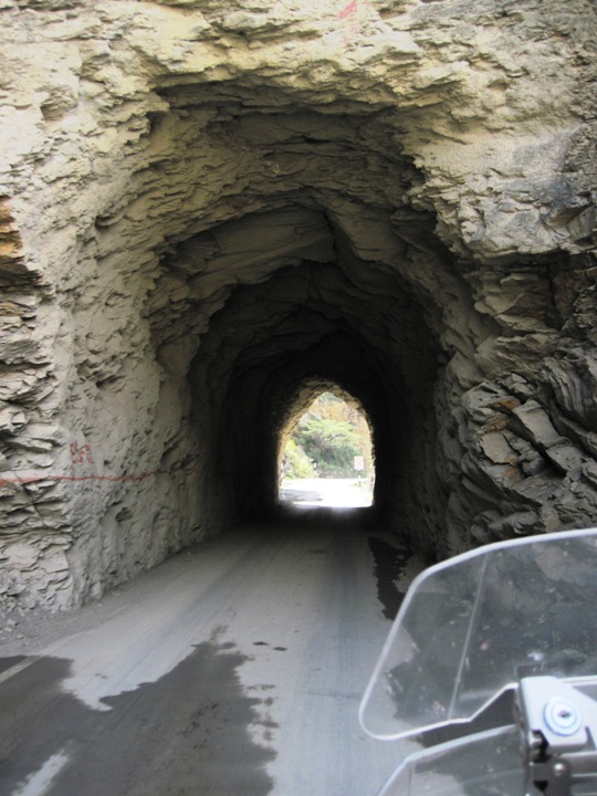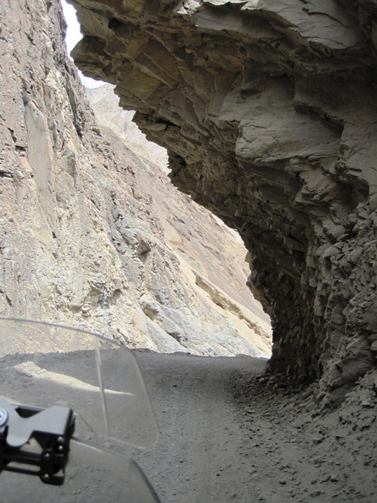 In one tunnel, I met a pick-up coming tha other way, and the cheeky blighter signaled for me to reverse…!! I stared at him in the gloom for a few seconds, before a burst of profanity let him know that there was no way in hell I was going to even attempt to turn the heavy bike around in complete darkness, in a rock-strewn tunnel… I revved the engine and signalled for him to back up or prepare to camp…!!