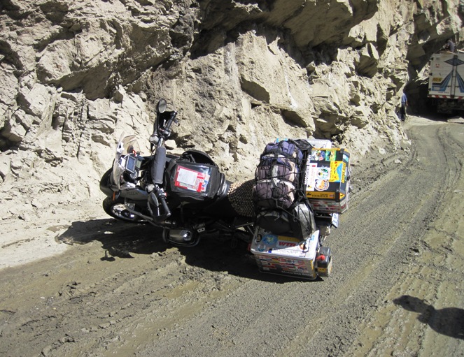 I was still silently congratulating myself for not having a mouthful of mud, when the driver of the truck came rushing up to help me lift the Big Fella back onto it’s rubber… I rode back a few hundred metres, and together with a bunch of guys from the car that was in front of me, and another that was also waiting, we stood around laughing and joking, taking bets as to when a rockfall would rain down on the truck…!!
