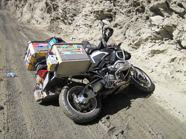 Oh dear, I don’t see any damage to Big Fella, how are your legs and arms? I know the mind won’t be its cheerful self. Hopefully you were taking it easy when he slipped out from underneath you. Sludge, mud and hairpin bends do these awful things to a bike that it so loaded. Keep us posted.