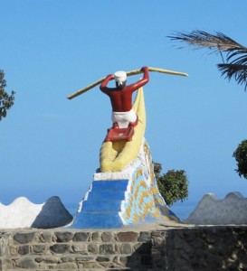The Huanchaco traditional fisherman have made the town a popular tourist destination... Statues like this one can be seen all along the seashore...