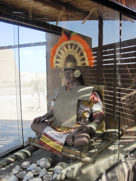 In a showcase near the entrance is this figure depicting what a Chimu king would have dressed like for ceremonial purposes... The gold and silver ornaments held no value to them, apart from decoration....