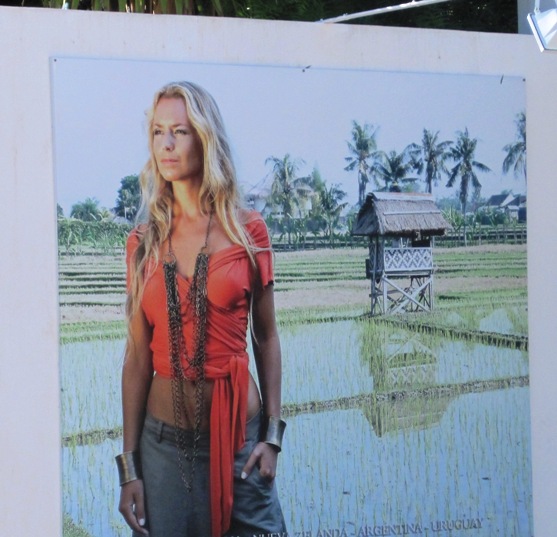 False advertising...?? This is a poster for a Bali Holiday I came across on the outskirts of town... Now what are the chances of finding a beautiful, blonde woman amongst the rice paddies in Bali...?? A million to one...?? Well near impossible you may think...!!