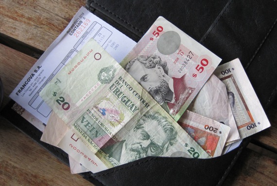 Trying to keep abreast of exchange rates when you cross borders as frequently as I do is not easy... I had a wallet full of Uruguayan money and we were crossing into Brazil in a few hours time...!!