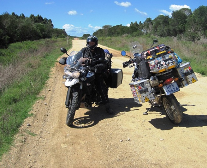 The gravel road was not at all difficult to ride on, but was littered with a few decent sized potholes which weren’t always possible to avoid… I hit one of these at about 90 km/h when I was trying to catch up to Roger to get him on video…