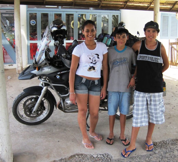 At Torres, we stopped for a light lunch and were served by these young kids...!! They were more than intrigued by the two Gringos and their bikes...