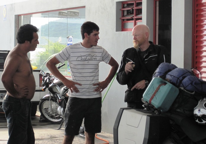 "Before I met that fella over there, I had a full head of hair...!! You should take my advice and stay well clear of him...!! The man is a menace...!! He won't refuel until he runs out completely...!!"... Roger Arnold chats to the locals in Brazil...