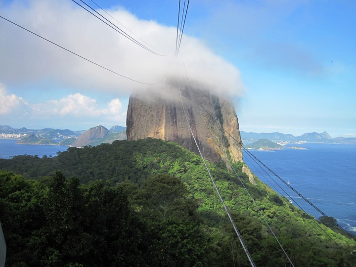 By the time we had taken the first cable car to the halfway point at Sugar Loaf’s base, the clouds came swarming in off the Atlantic, and at one point visibility was almost zero…!!
