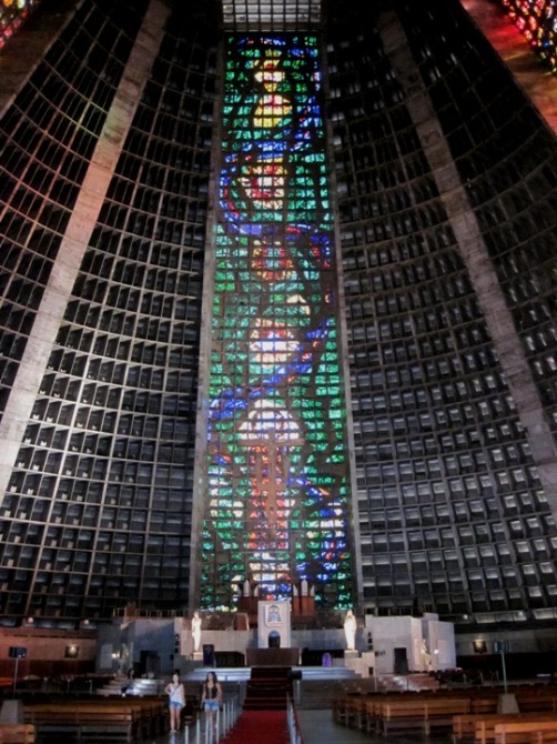 We were herded back onto the bus, and made our way to the last stop on our tour, the Metropolitan Cathedral of Rio de Janeiro… On the way there, we passed under the Carioca Aqueduct, which was built in the middle of the 18th Century, to bring water from the Carioca River to the city…
