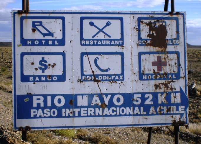 I finally reached the little town of Rio Mayo, reminding myself that “The Asphalto stops here…!!” as I rode past the little information shack on the main road… A few hundred metres past that, and apart from one road leading down part of the main street, every other road was hard packed gravel, littered with large smooth stones…!!