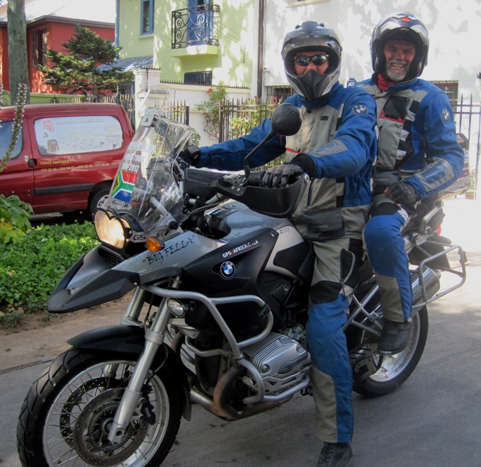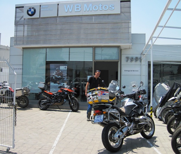Michel needed to collect “Old Yella” from WB Motos, the local Motorrad dealer in downtown Santiago, and rather than go by taxi, I suggested we saddle up the Big Fella and ride there together…
