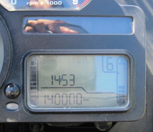 The second occured just 75 km later… When the clock read 140 075 km… This marked my 100 000th kilometre on the road since I started out on my ride around the world…