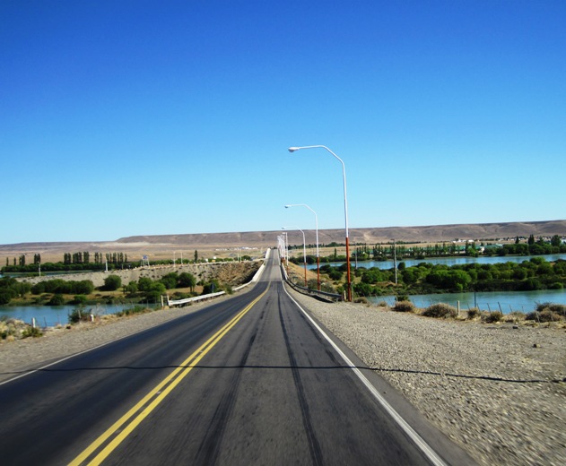 About 240 km north of Rio Gallegos, I crossed the wide Rio Santa Cruz, and stopped in the little town of Comandante Piedra Buena to consider my refueling options… Even though I had eight litres of spare fuel, I thought it might be prudent to refuel here… At the first service station there was no petrol available, only diesel…!! I was told to try the larger petrol station a few kilometres outside town…