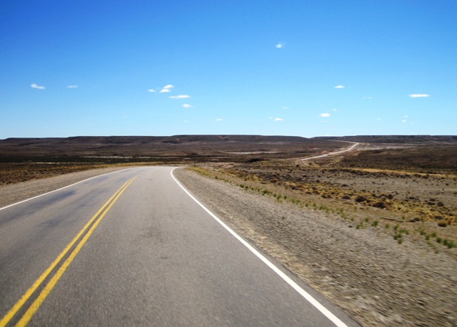 At this point, we had already been on the road for almost eight hours... Long rides are the norm in Patagonia, where endless highways run through endless vistas of wind and sun blasted prairie...