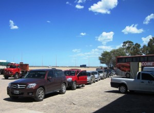 I stopped again in Sierra Grande, 200 kms north of Trelew and about halfway through the day’s ride… The only fuel station there was clogged with cars waiting for the petrol tankers to arrive… Some of them had been sitting there for over three hours…!!