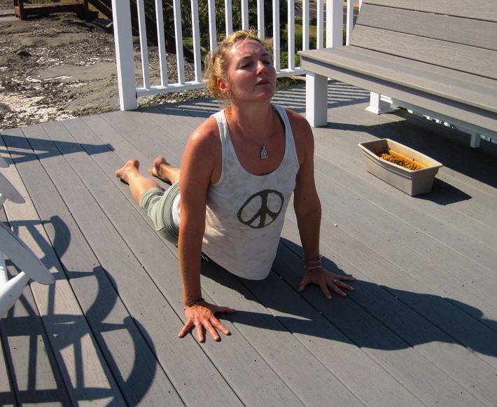 After a walk on the beach, Patricia gets down and does a bit of yoga…. Yes…Even on a day like today…!!