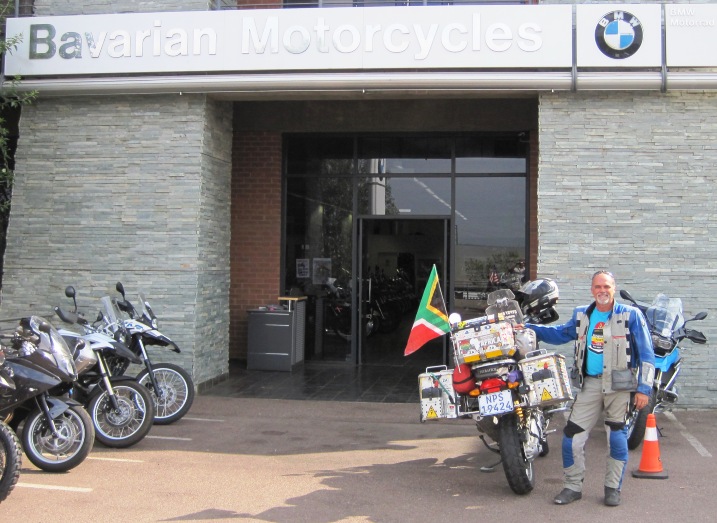 I rode the Big Fella to Pretoria, and stopped to say hello to Roger Smith of Bavarian Motorcycles, the BMW dealership that had very kindly fitted my Ohlins shocks and had them repaired the first time they gave up on me. I spent a short time with Roger, drinking coffee while I brought him up to date on the last few months of my ride.