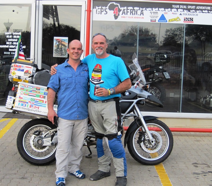 Barely a few hundred metres away was the new premises of GPS4Africa, owned by my good friend Pauli Massyn, who had helped me in so many ways before I left, that at one point I felt it would have been easier to pitch a tent on his front lawn, than ride to and from his house every other day to have another accessory fitted to the bike.