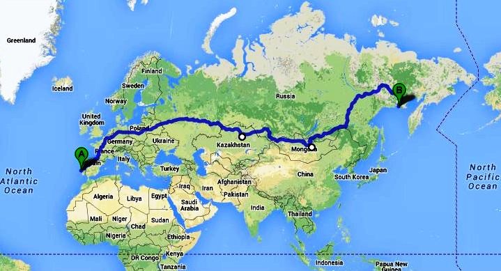 Cabo da Roca in Portugal, to Magadan in far eastern Russia. Should be a cracker !!