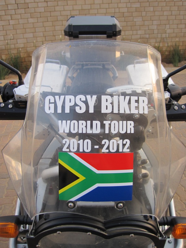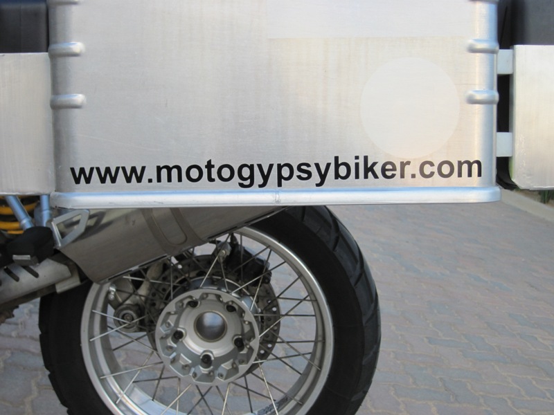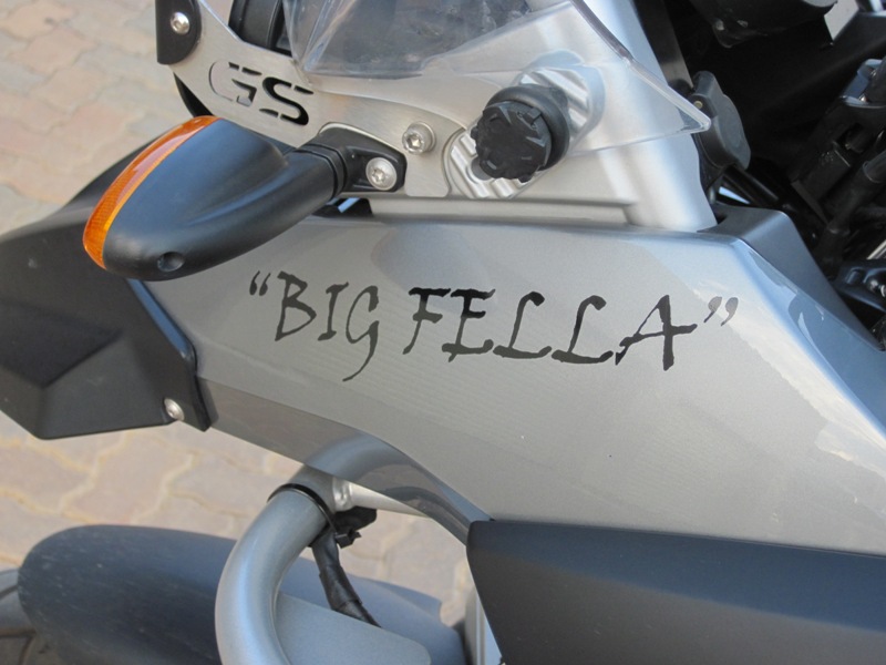 Today I visited Kyama Print, who had very kindly agreed to do some branding on the bike. The company was recommended to me by a biker friend, George Bester, whose GX 450 had been “all stickered out” by Rakesh and his team at Kyama Print. I wanted something simple to put on the windshield, and my website address put somewhere visible on the bike. After due deliberation, we settled on the format you see below, and in recognition of his past and future exploits, I decided to put the Big Fella’s name on the bike as well !! After all, we are a team, and this journey is about both of us, man and bike…