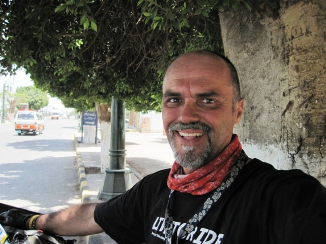 Hmmm…. seems like you will be needing to buy new boots soon; your’e looking well despite the heat and dehydration. Safe ride to Cairo.