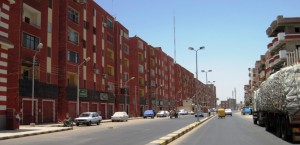 Mega blocks of flats have been built to alleviate the housing crisis in Egypt... These line the main street of Asyut...