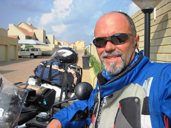 Then it was back in the saddle for the final run in to Pretoria. I had to get used to the fact that I was back into a system of congested roads, and after Namibia and Botswana, where traffic is light, I now had to have my wits about me… At 3.00pm, I rode through the gates of the complex where my apartment (now Debbie’s) was situated, stopped to answer the questions posed by the security guards, who had wondered where I had been for the last month… I pointed to the flags stuck on my pannier in reply, and watched as their eyebrows took a trip north…