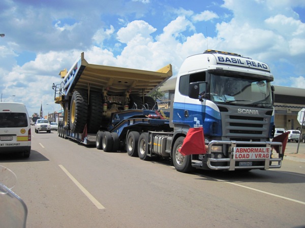 And with that, I opened the throttle and roared away from him… I had spent almost an hour being messed about by the incompetence of our Border Officials, and had had more than enough…!! I poured on the gas on the way to Zeerust, where a massive ore carrier was being transported through the centre of town, bringing traffic to a standstill…