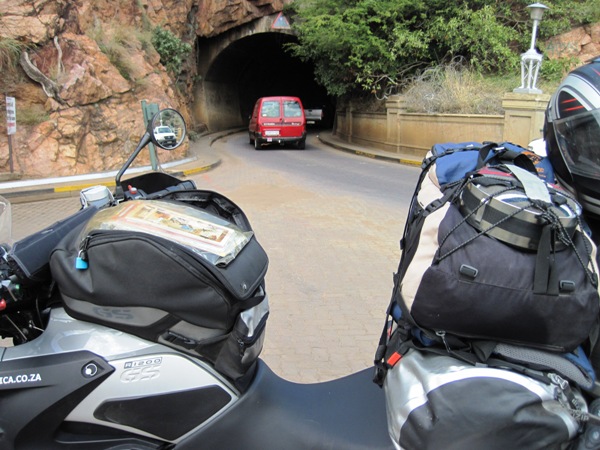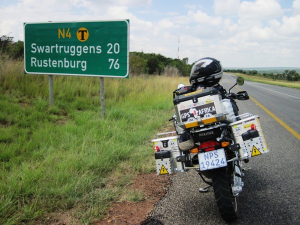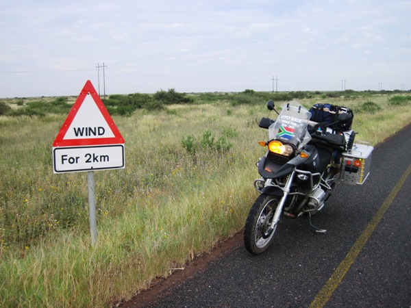 Clearing the Botswana customs and immigration was simple and over in minutes… The South African border post was another matter… I was sent to three different offices to get a gate pass, and each of them had no passes to hand out or sent me off on another fruitless search for one… I eventually got on my bike and rode up to the gate… When the police officer stationed there asked for my pass, I said, “You find me one in any of those bloody offices over there, and I’ll be able to give you one !! Have a nice day !!”