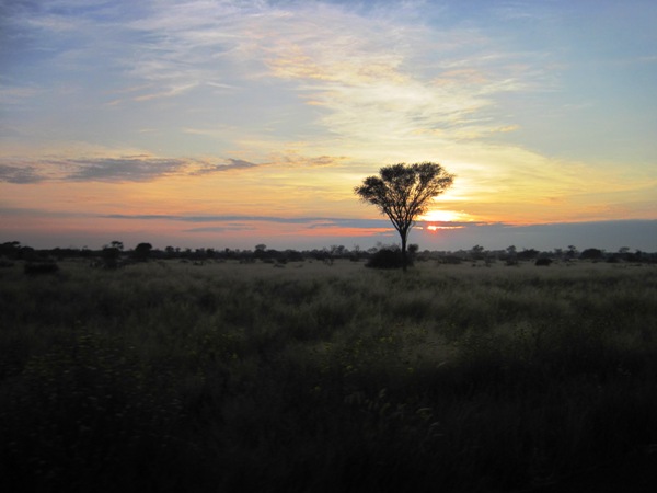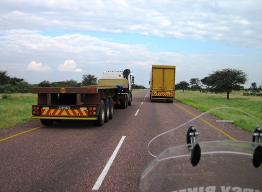 Like many bikers, I prefer not to ride in the dark, but with another 700 odd kms to ride today, I wanted to get an early start… I left Kang at 6.00 am, and rode out onto the Trans Kalahari and was immediately swallowed up into the inky darkness… I rode at about 80 km/h, squinting into the area lit up by my headlights and spotlights… Truckers who had not stopped over at Kang, had chosen to park on the more open sections of the road to overnight…Most were still sound asleep as we motored past them…