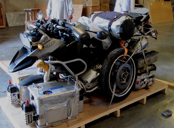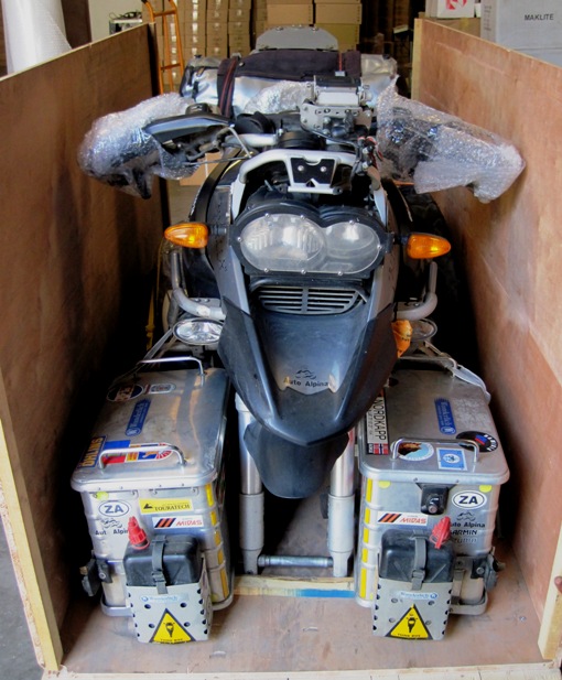 We packed all my gear around the bike, secured it to the pallet, and then assembled the crate on the pallet…