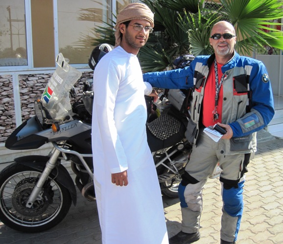 I paid an “exit fee” of about R40, had my passport stamped by yet another friendly Omani official, and then rode across a dusty open stretch to the Sharjah Emirate border a few hundred metres away…