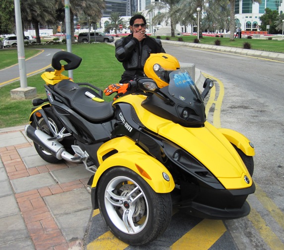 Just then, a three-wheeler rolled up and a nattily dressed biker dismounted and strolled over to place his order… We got talking about his bike (which he said he had paid $35 000 for…) and he told me that it was one of eight in Qatar…
