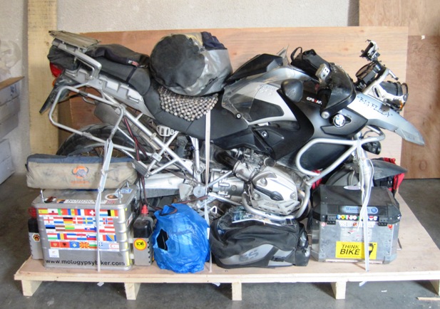Somebody at the Customs warehouse in Dubai had noticed the keys dangling enticingly in the ignition, and had decided to start the bike in its crate…