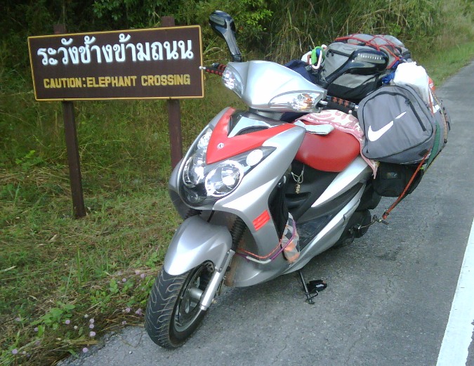 "Mind those elephants, Willi...!! They're looking for all that food you have in the pantry strapped to the back of your scooter...!!"
