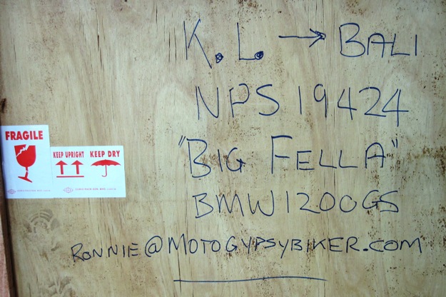 After a long wait while I regretted having stopped smoking, as I was in desperate need of something to calm my nerves, Mrs. Yep returned with some good news… She had been in touch with yet another airline, Geruda of Indonesia, who had agreed to fly the bike at the original rate she had quoted, but the larger crate size meant that the overall cost had increased by about $200.00… She nervously waited while I digested these additional costs…