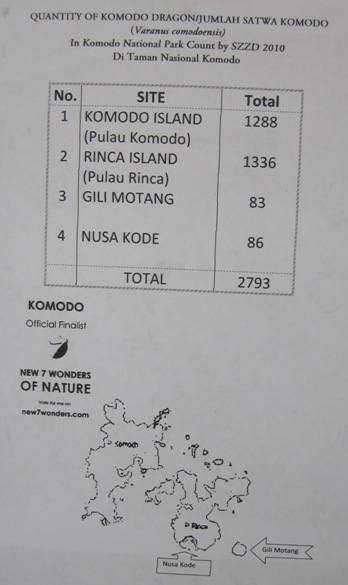 Near the park office, we stopped for the obligatory photo op to confirm to all and sundry that we had indeed made it to the Komodo National Park… In the office, a list of additional costs to visit the Park, were read out to us… Rp 40 000 entrance fee, Rp 25 000 camera fee and lastly, Rp 50 000 for the guide, which we could share between the three of us…