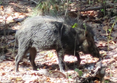 We walked through a leafy forested area, watching a small troop of monkeys swinging around in the trees above us… Then while we were resting under the shade cast by a large Banyan Tree, a wild boar tip-toed through the leaf litter on the far side of a small stream that ran between him and us…