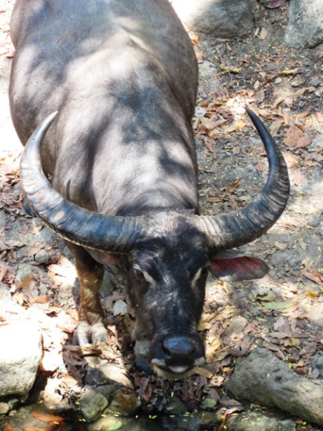 Ignoring us completely, the buffalo walked forward and drank deeply from the pool…