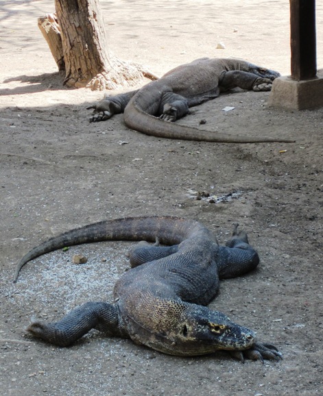 Near the staff kitchen, three huge Komodo Dragons lay sunning themselves… We spent another fifteen minutes filming and photographing them…