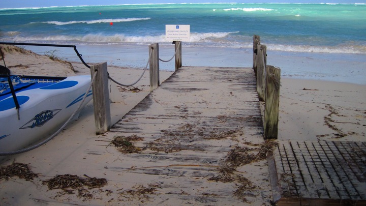 I stood watching huge waves pounding the outer reef half a mile away, and was thankful that the reef was bearing the full force of the waves… Had those waves come marching onto the shore at Parrot Cay, I have no doubt that the damage here would have been far greater…