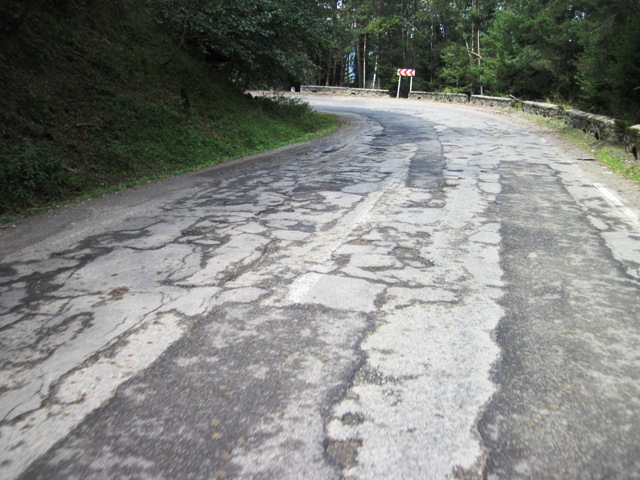 Once through the tunnel, I put away the camera for the most part and rode down into the valley… The road was badly cracked and potholed in place…