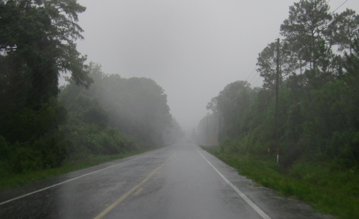 I gave my wife my most winning smile and told her as sweetly as I could that it was not so bad, and that “wet was wet”, and “no sense in stopping as I was soaked already when she handed me my rain-suit just outside Crooked River…”