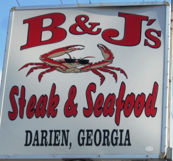 We stopped at B & J’s in Darien, a favourite restaurant, frequented by locals from as far away as Brunswick and beyond. It is so popular, that we had to wait outside for over 30 minutes before we could be seated. Ernie was feeling the heat and humidity more than the rest of us, and eventually gave up on the wait to get a table and took off on his bike to cool down…in more ways than one !!