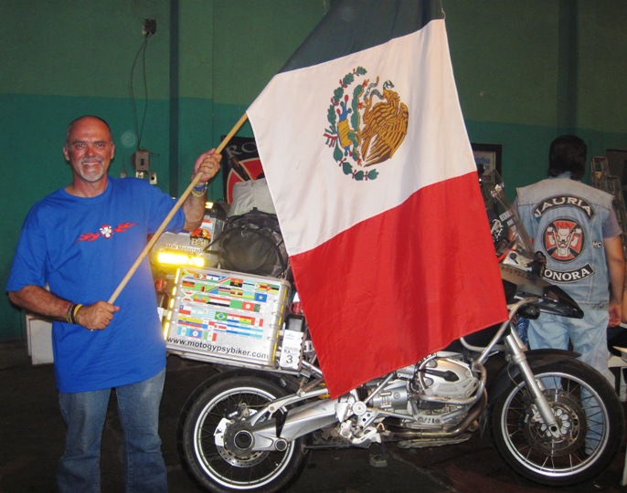 “I had spent exactly a month in Mexico, and by tomorrow will have covered almost 7 000 km in the country that I hoped to visit again one day…. !!” On hearing this, members of the club unfurled a large Mexican flag, handed it to me, and requested that I pose with it near the Big Fella…