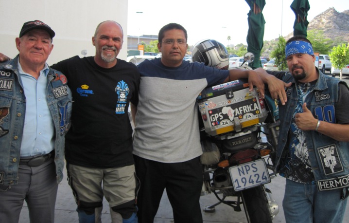 A short while later I heard the throaty roar of a Harley, and two bikers pulled up next to the Big Fella… They introduced themselves as Beto and Sr. Aguilar…I later discovered that the latter was the oldest biker in the club, and at 64, still held his own with his much younger counterparts…!!