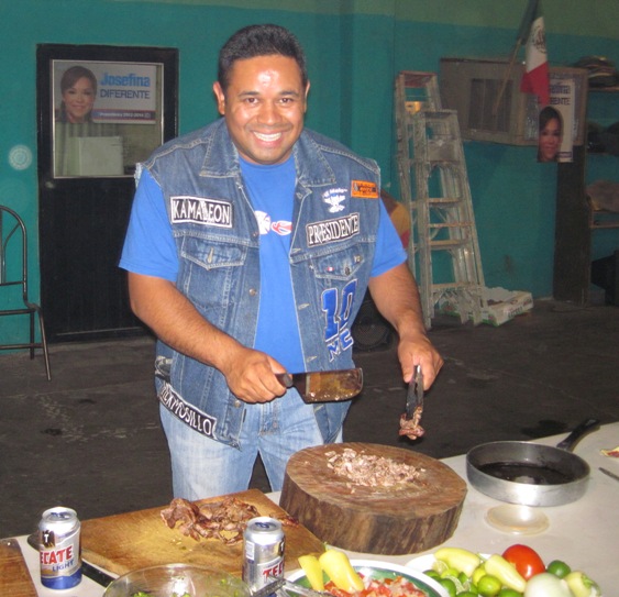 Beto peeled onions and chopped tomatoes, while others mashed avocado to make guacamole… I sat sipping a Tecate while I watched these close-knit group of friends go about preparing our dinner…