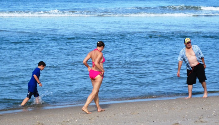 We stopped at a store to buy some snacks for the beach and then crossed the causeway at Titusville, that took us over to the Atlantic coast; parked the cars and the bike and climbed the wooden walkway leading to the beach. Quite a few families had obviously had the same idea, as the beach was anything but empty stretch of sand that I was expecting at that late hour.