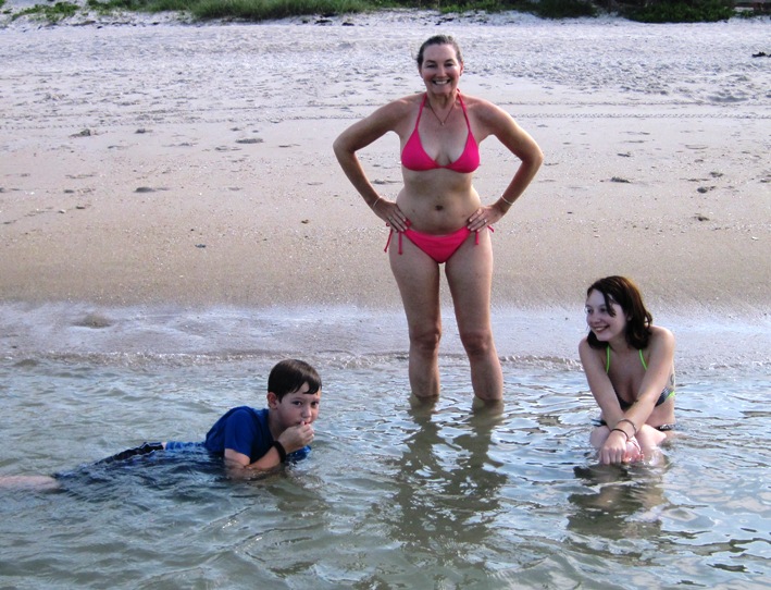 While we were frolicking about, a ranger came roaring down the beach and instructed everybody he came into contact with, to pack up and prepare to leave. Apparently the beaches we were on closed at 6.00 pm ! Perhaps the authorities are afraid that people would swim over to the Space Centre under cover of darkness to hijack a rocket !!